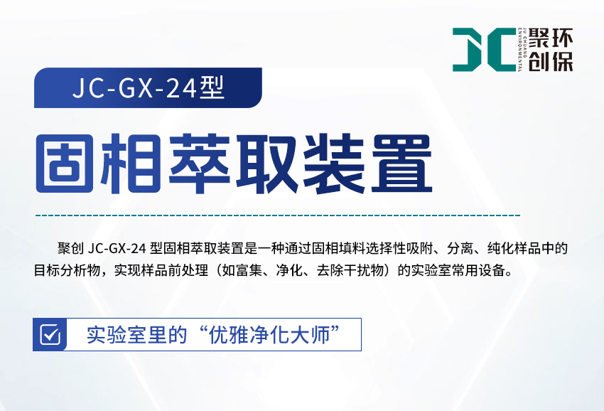 聚創JC-GX-24型固相萃取裝置是由液固萃取和液相色譜技術相結合發展而來,利用固體吸附劑將液體樣品中的目標化合物吸附,與樣品的基體和干擾化合物分離,然后再用洗脫液洗脫或加熱解吸附,達到分離和富集目標化合物的目的(即樣品的分離,凈化和富集),目的在于降低樣品基質干擾,提高檢測靈敏度,其應用于各類食品安全檢測、農產品殘留監控、醫藥衛生、環境保護、商品檢驗、自來水及化工生產實驗室。二、產品參數