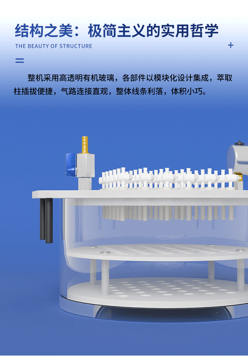 7. 固相萃取裝置的內部試管架由聚四氟乙烯制成,因此具有極高的耐腐蝕性。