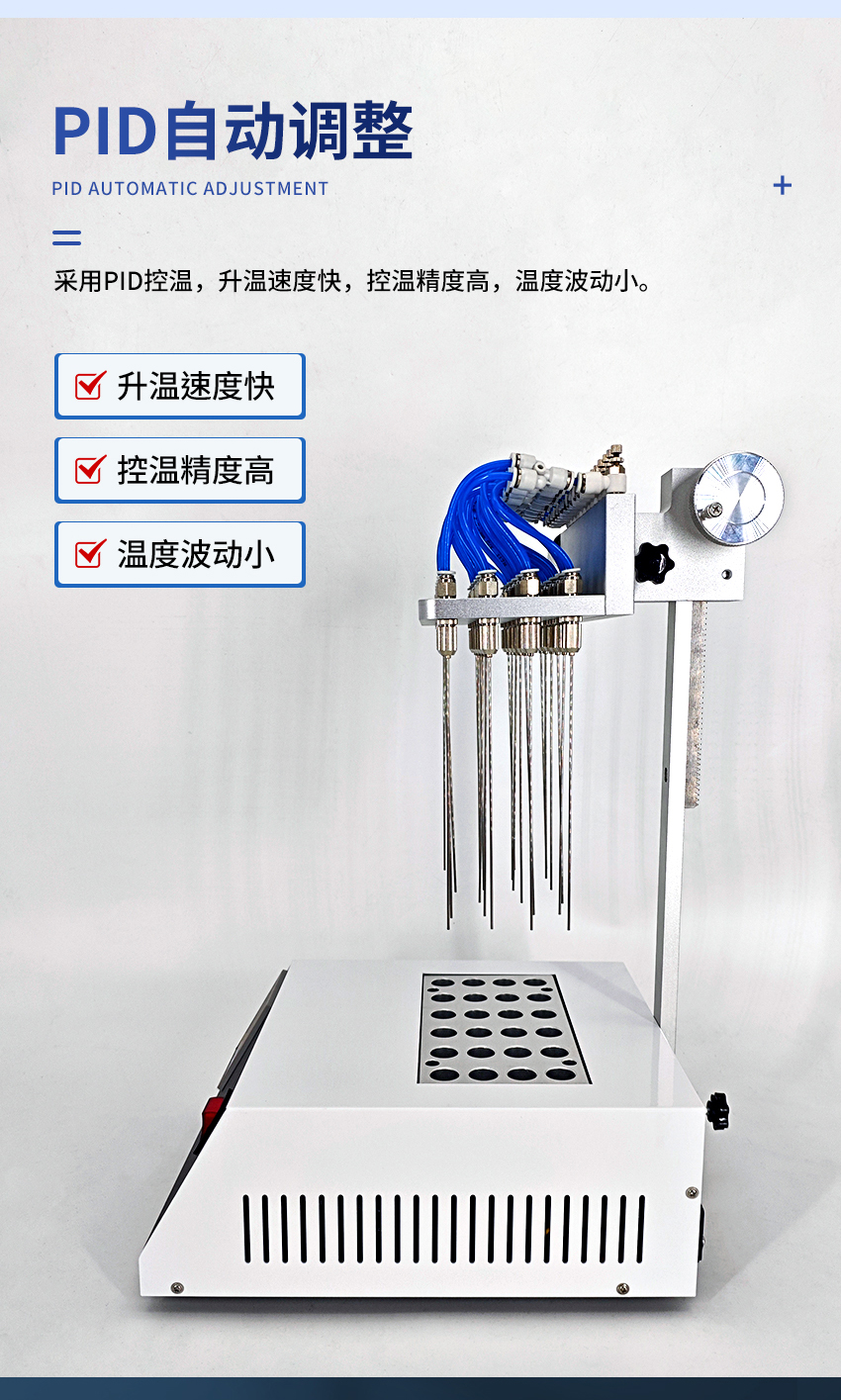 該設備通過金屬浴加熱方式,能迅速去除樣品中的溶劑,從而大幅縮短實驗時間。同時,操作簡便,整個系統可在通風柜中進行操作,不僅降低了操作風險,還減少了水資源的消耗以及廢水的排放,符合環保要求。