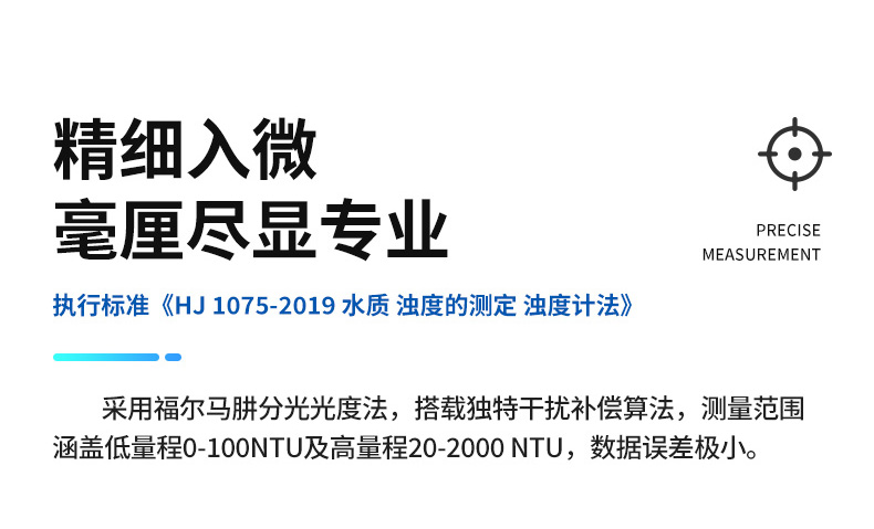 1.測量范圍:低量程0-100NTU,高量程20-2000 NTU;