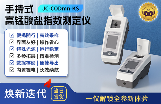 聚創JC-CODmn-KS型手持式高錳酸鹽指數測定儀采用直接分光光度法,具有體積小、重量輕、操作簡便、靈敏度高等特點。可以廣泛用于發電廠、純凈水廠、自來水廠、生活污水處理廠、飲料廠、環保部門、工業用水、制酒行業等部門的高錳酸鹽指數的測定,從而達到規定的水質標準。