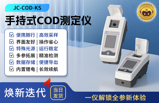 聚創JC-COD-KS型手持式COD測定儀采用快速消解分光光度法(鉻法),具有體積小、重量輕、操作簡便、靈敏度高等特點??梢詮V泛用于發電廠、純凈水廠、自來水廠、生活污水處理廠、飲料廠、環保部門、工業用水、制酒行業等部門化學需氧量COD的測定,從而達到規定的水質標準。