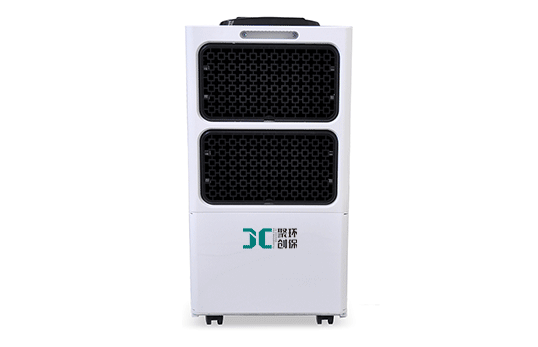 除濕機主要由壓縮機、兩器(熱交換器與冷凝器)、風扇、水箱(或排水管)、機殼以及控制器構成。其工作原理為:風扇將潮濕空氣吸入除濕機內,壓縮機制冷系統會使冷凝器表面溫度降至空氣的露點溫度以下。當潮濕空氣流經冷凝器時,空氣中的水汽會析出并附著在冷凝器表面(就如同夏天從冰箱拿出一瓶水,不一會兒瓶子外壁會出現一層冷凝水)。這些水順著冷凝器上的親水箔流到積水托盤,進而流入水箱或通過排水管排出。而經過除濕的干燥冷空氣,會經過熱交換器加熱后排出機外。如此循環往復,從而降低室內濕度。