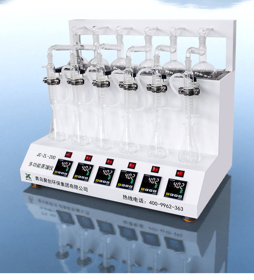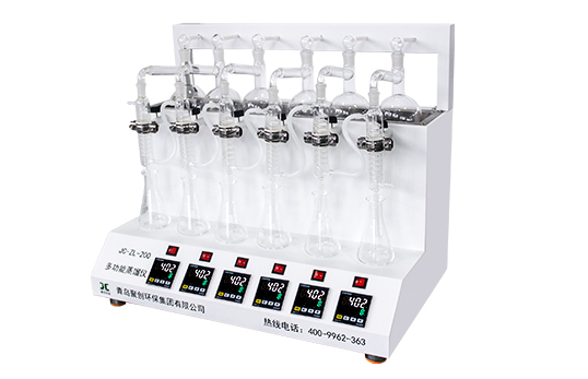 聚創JC-ZL-200型多功能蒸餾儀,又被稱作氨氮蒸餾器、揮發酚蒸餾器、氰化物蒸餾器。該儀器采用最新的遠紅外加熱方式,具備熱效率高、使用壽命長、起溫和降溫速度快,以及加熱時間和加熱功率可調節等諸多優點。此外,儀器能夠外接循環水冷卻裝置。整個系統設計簡潔,安裝與維護便捷,使用性能可靠。其應用范圍廣泛,可用于環保、化工、材料等行業中,凡是需要對樣品進行蒸餾分析的前處理過程均適用,尤其適用于氨氮、揮發酚、氰化物等測定前的樣品蒸餾處理。