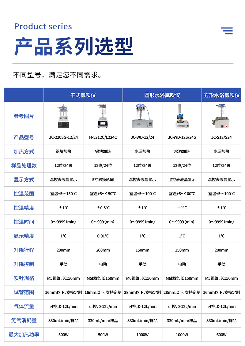 1)12位處理:JC-220A可視(可以觀察試管內的樣品液面,方便實驗)、JC-220C-12、JC-S12、JC-WD-12、JC-WD-12S、JC-D12。